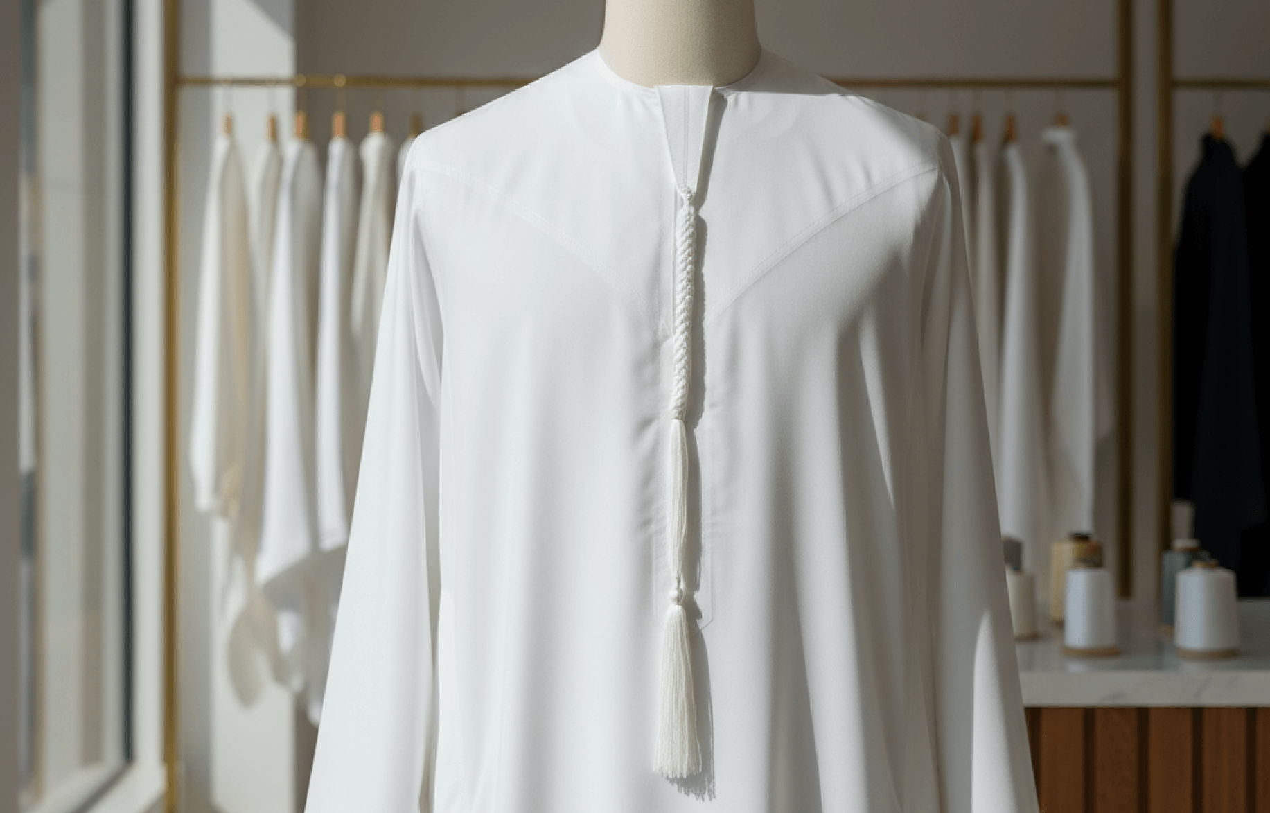 كل صورة هي شهادة على إرثنا، تروي حكاية من “الفخامة الصامتة”، تلك التي تكمن في التفاصيل التي لا تُرى بالعين المجردة، وفي ملمس قماش استثنائي. ندعوكم لتأمّل كيف تتحول أنقى الأقمشة السويسرية واليابانية على أيدي أمهر الحرفيين إلى كنادير خالدة، مصممة لتعكس وقار الرجل الإماراتي وهويته الأصيلة.